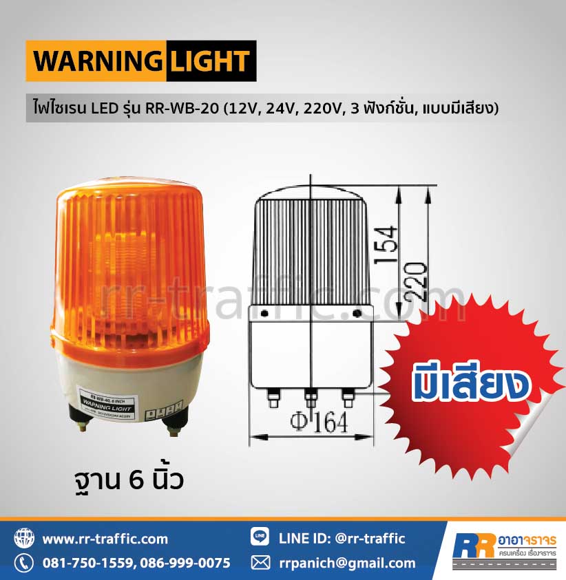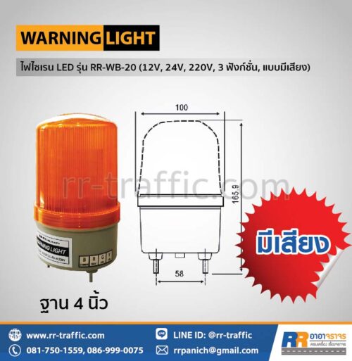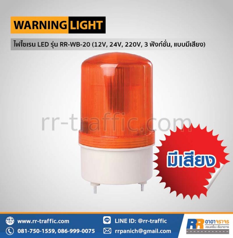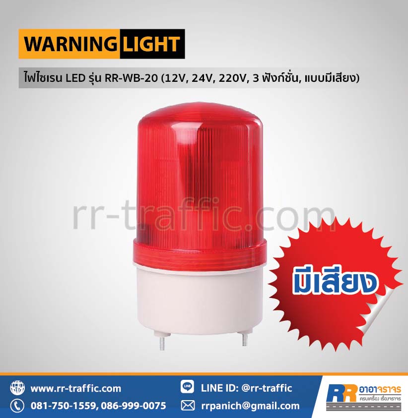 ไฟไซเรน LED พร้อมเสียงเตือน รุ่น RR-WB-20 (12V, 24V, 220V, 1 ฟังก์ชั่น)