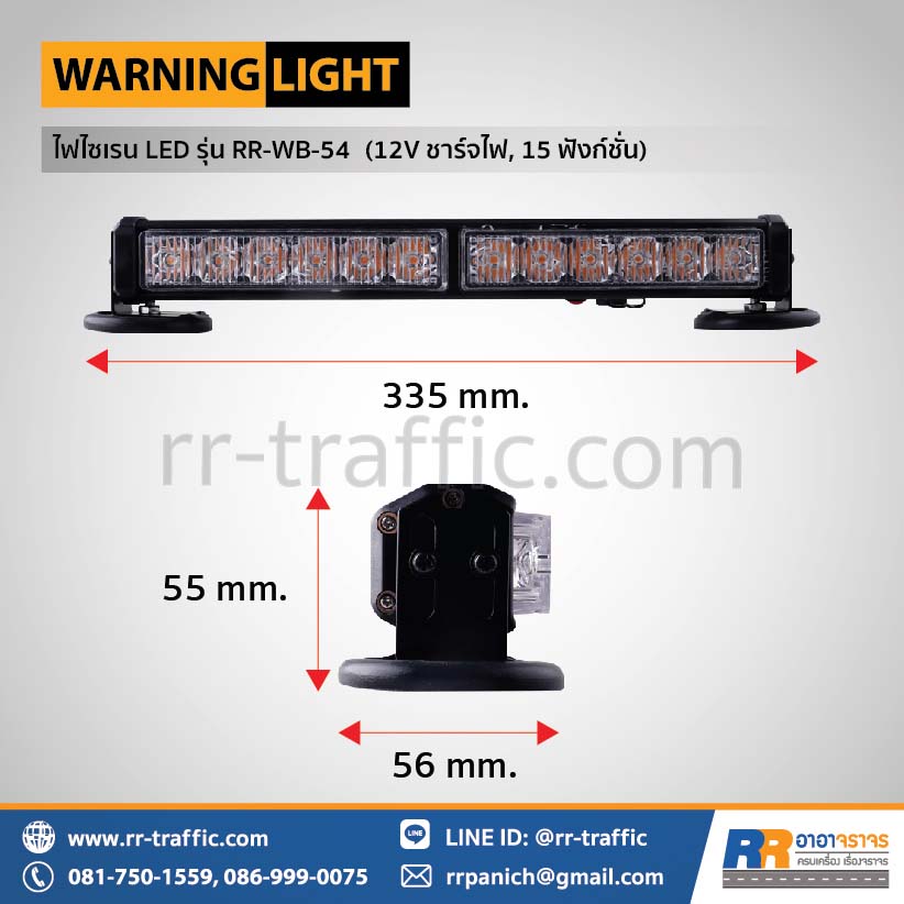 ไฟไซเรน LED รุ่น RR-WB-54 (12V ชาร์จไฟ, 15 ฟังก์ชั่น)