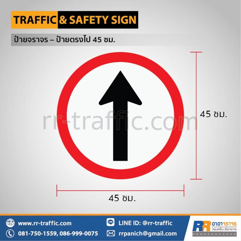 ป้ายจราจร ป้ายตรงไป วงกลม 45 ซม. ติดสติ๊กเกอร์สะท้อนแสง