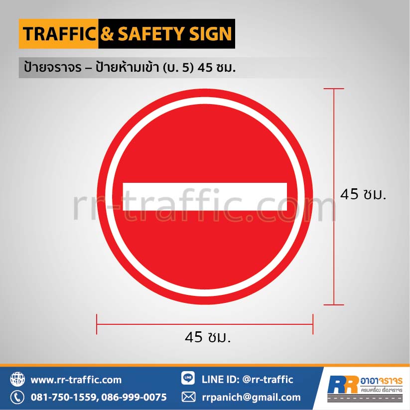 ป้ายจราจร ป้ายห้ามเข้า (บ.5) วงกลม 45 ซม. ติดสติ๊กเกอร์สะท้อนแสง
