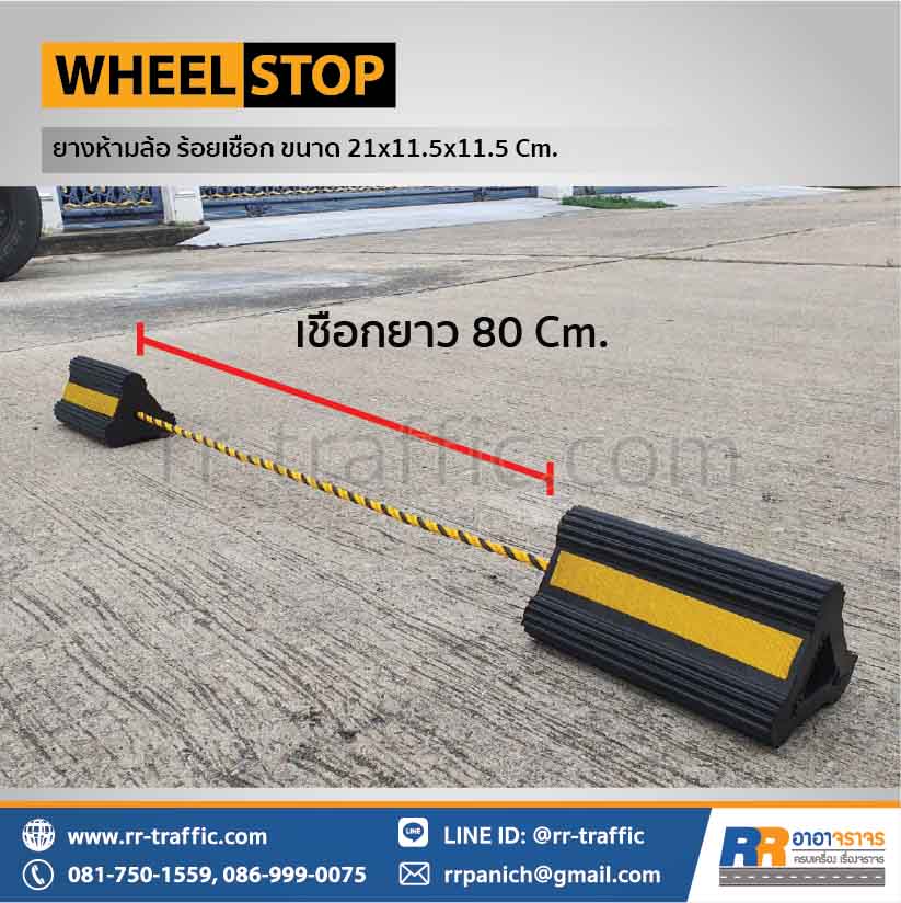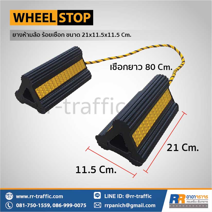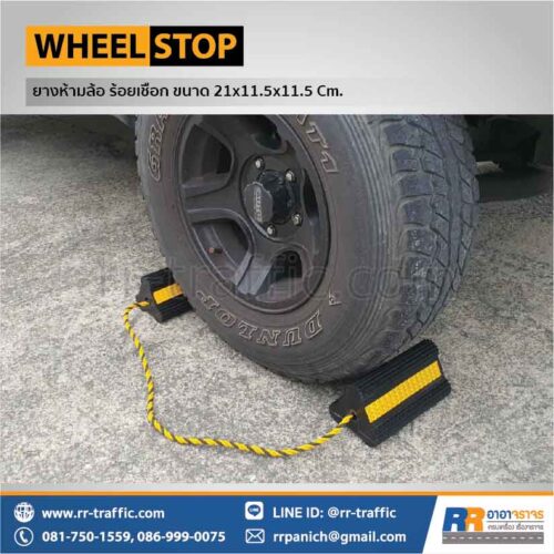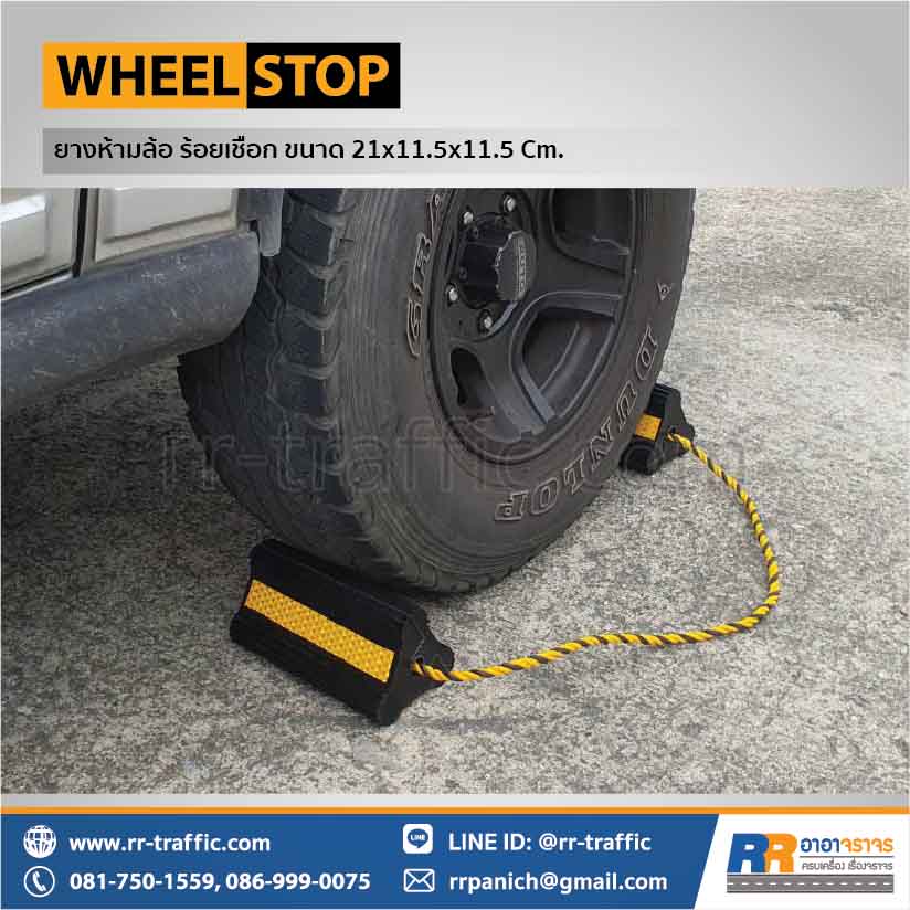 ยางกั้นล้อรถ ยางหนุนล้อ ร้อยเชือก (2 ชิ้น) ขนาด 21 x 11.5 x 11.5 ซม.